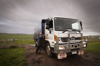 They carry out the core work of the business - the collection of feedstock from farms around Victoria for the production of pet food - using a fleet of trucks, each equipped with a tipping body and a hydraulic winch.